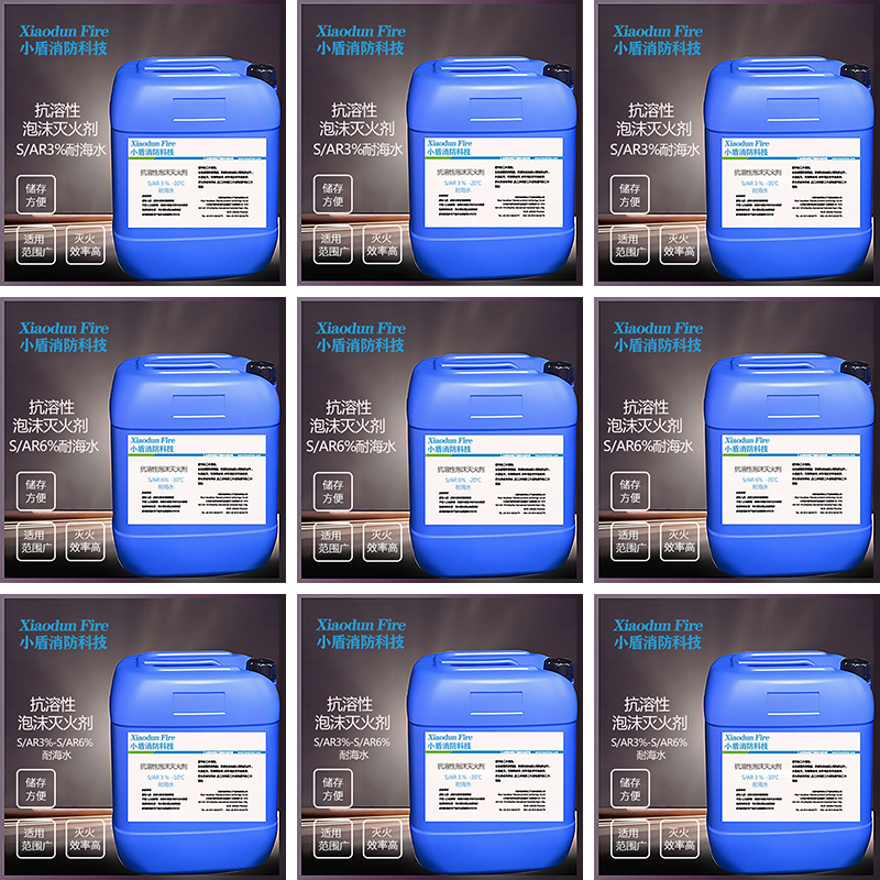 抗溶性泡沫滅火劑是一種多用途高效的泡沫滅火劑,由黃原膠、碳?xì)浠衔锉砻婊钚詣⒎急砻婊钚詣?、聚合物?fù)合物、抗燒劑、穩(wěn)定劑和抗凍劑組成。除了一般泡沫滅火劑的滅油性能外,該滅火劑還具有優(yōu)異的撲滅醇、酯、醚、酮、醛、胺、有機(jī)酸等可燃極性溶劑火災(zāi)的能力,儲(chǔ)存期長(zhǎng),可與各種低倍數(shù)泡沫生產(chǎn)設(shè)備中的水按3:97或6:94的比例混合。